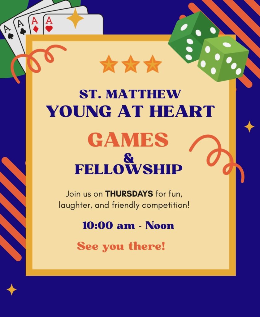 Young At Heart Games and Fellowship on Thursdays at 10 am